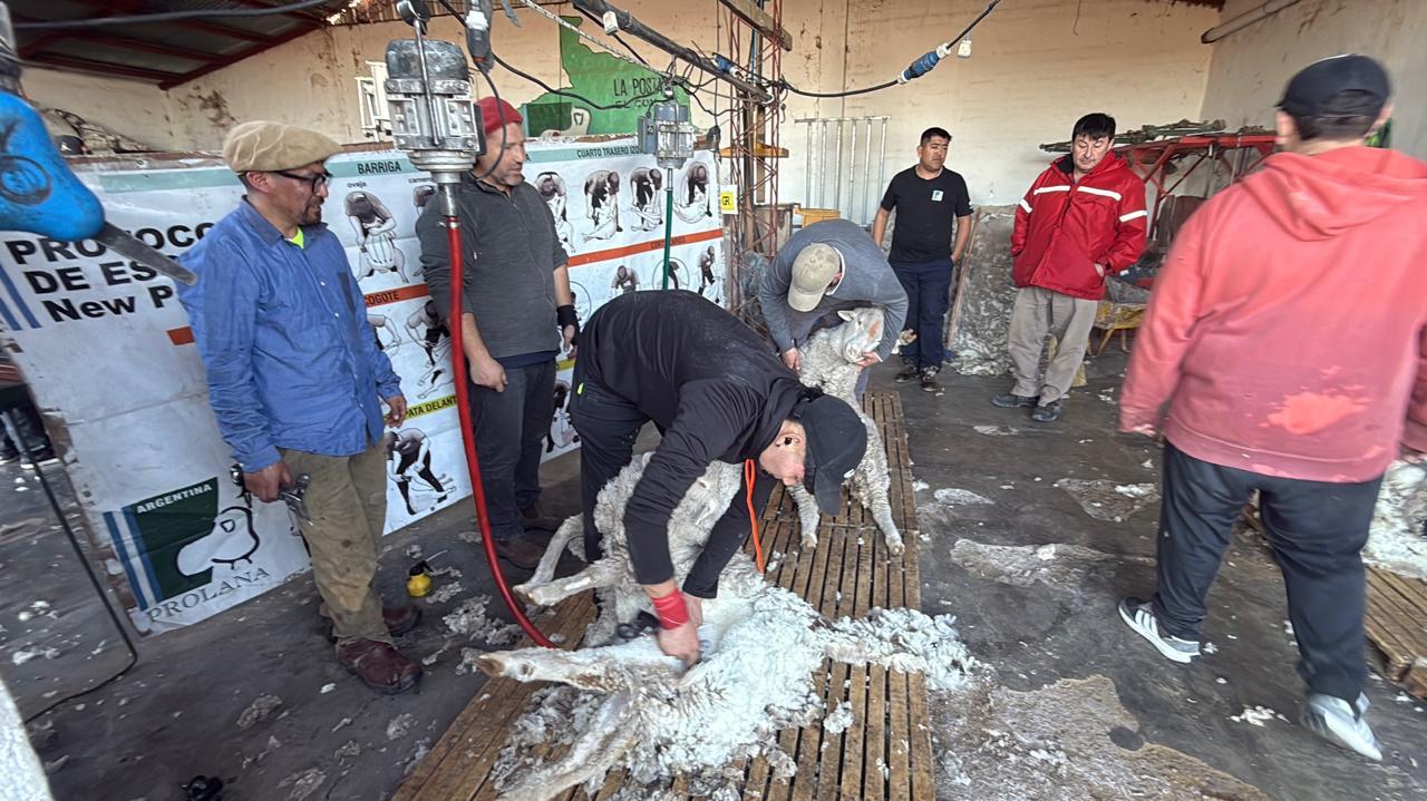 El Ministerio de Desarrollo Económico y Productivo de Río Negro, desarrolla una capacitación sobre esquila prolana en El Cuy hasta este miércoles. Trabajadores de comparsas, empresas contratistas y del sector ovino comparten técnicas de acondicionamiento de lana, mecánica, y una charla sobre sanidad ovina.